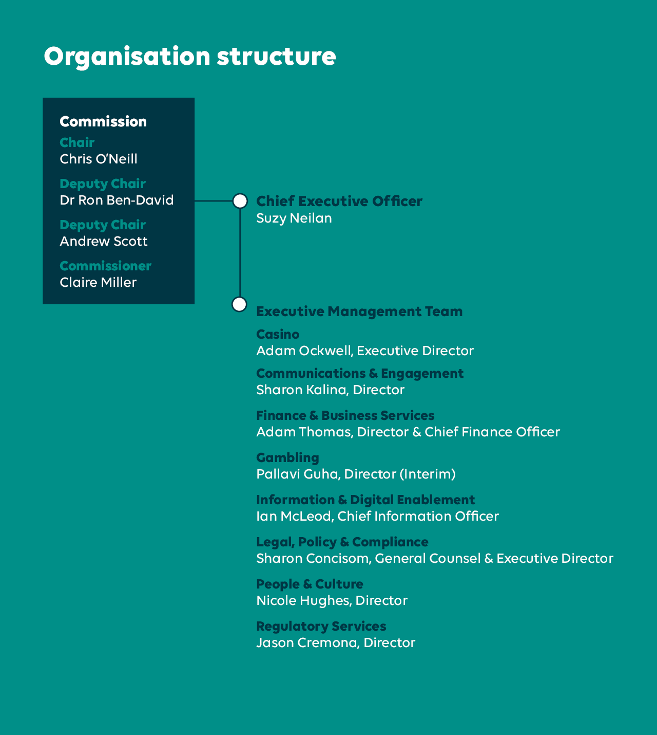 As an independent regulator, our internal governance ensures we have clear lines of accountability, make transparent decisions, and manage our risks and finances responsibly. This ensures we deliver on our obligations and our Purpose to ensure integrity, safety, and fairness for all.