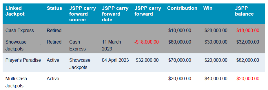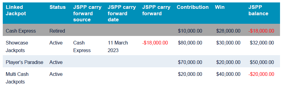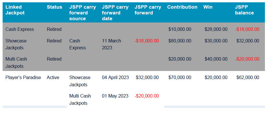 Note: to comply with the Act the venue operator must also allocate the positive JSPP balance to the overflow pool of the Player’s Paradise jackpot to ensure that the unpaid funds are returned to the player.