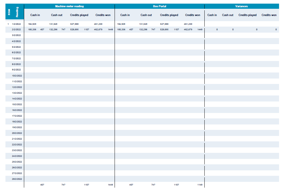 - ensuring all gaming machine meter exceptions have been cleared to allow for complete and accurate calculation of gaming taxes. Refer to section 2.2.ii of these requirements for further information regarding gaming machine meter exceptions
