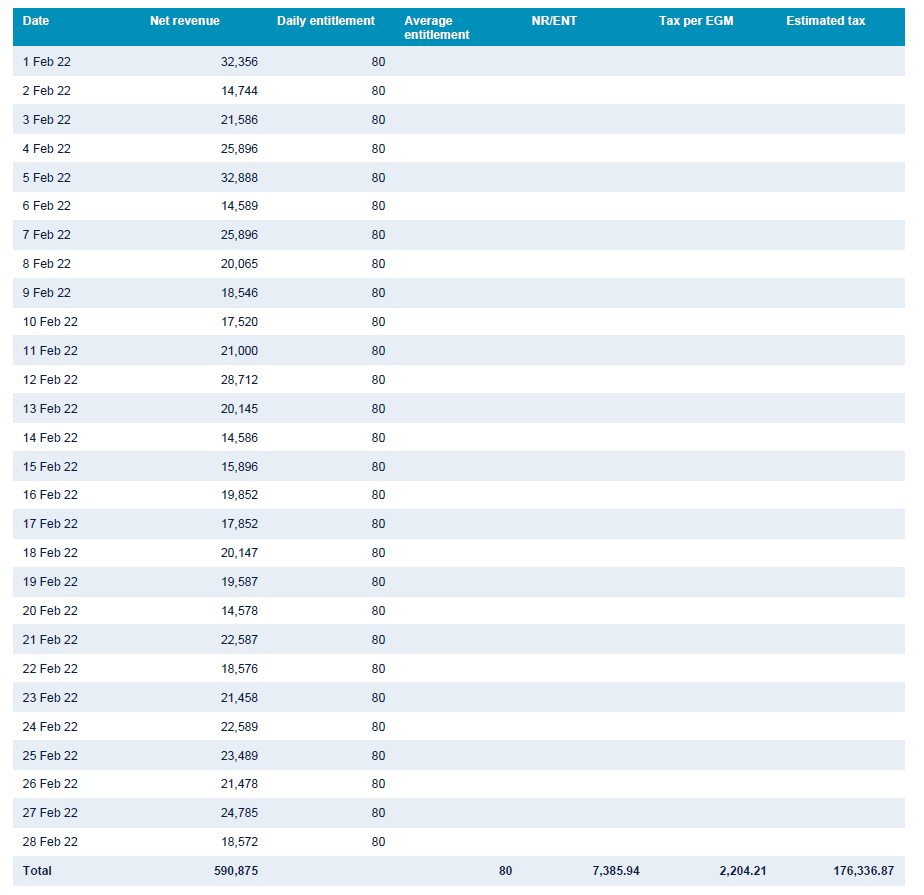 - Calculating and depositing the projected gaming tax payable by applying a pro-rated tax calculation or